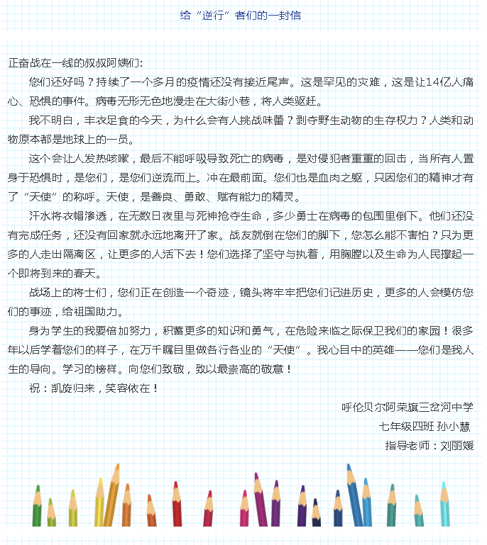 “我为最美‘逆行’者点赞”全区中小学生书信作品选登(第一期)