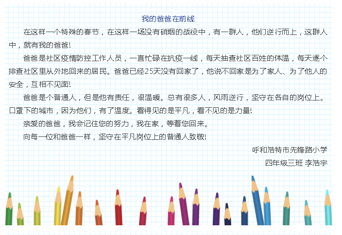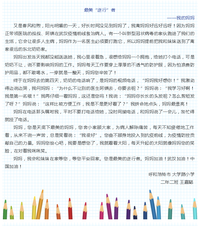 “我为最美‘逆行’者点赞”全区中小学生书信作品选登(第二期)