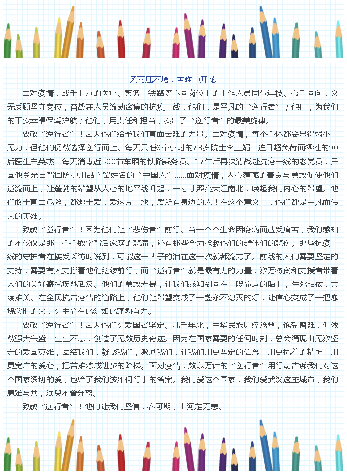 “我为最美‘逆行’者点赞”全区中小学生书信作品选登(第一期)