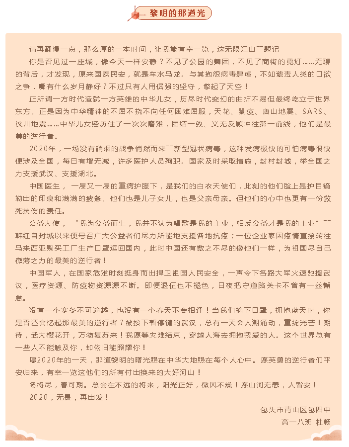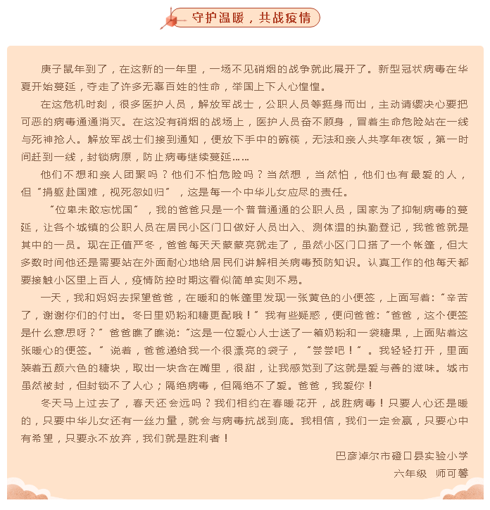 “我为最美‘逆行’者点赞”全区中小学生书信作品选登(第八期)