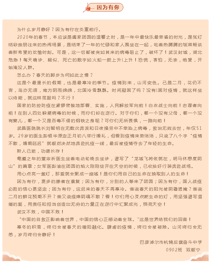 “我为最美‘逆行’者点赞”全区中小学生书信作品选登(第九期)